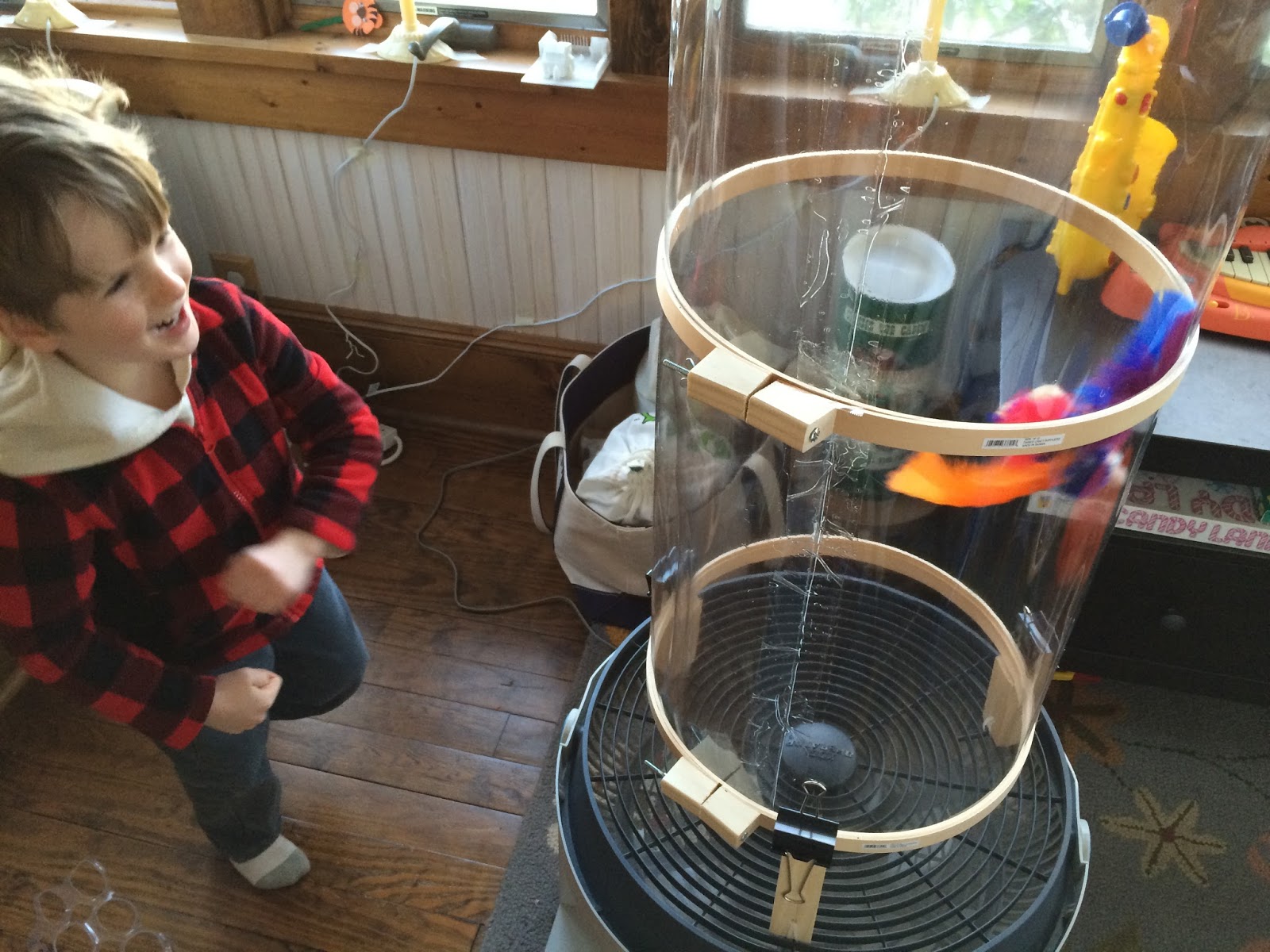 The wind tube creates opportunities for simple challenges or prompts. Goals can be adjusted depending on what you manage to design and how it reacts towards the goal you set. The bird remains interesting on many more levels. Launching, for example, can happen from the top or bottom of the wind tube and produces different effects. More exploration is in order!